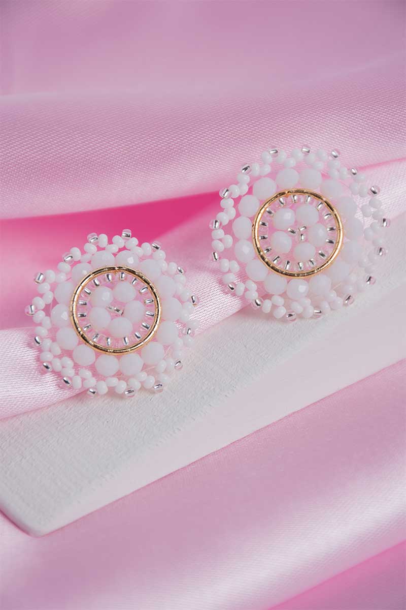 Maxitopo artesanal tejido en mostacillas y cristales, medida 3 cm