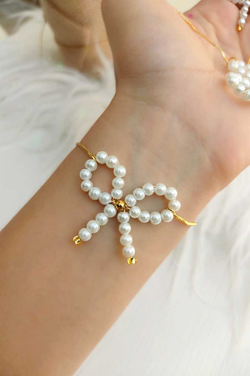 Pulsera sencilla perlas ajustable con pulsera dorados en covergold * UNIDAD