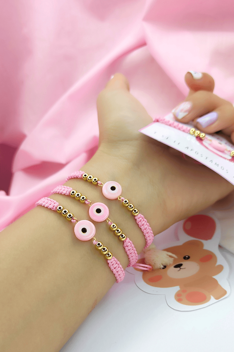 Pulsera tejido en técnica macramé con materiales en covergold, ajustable