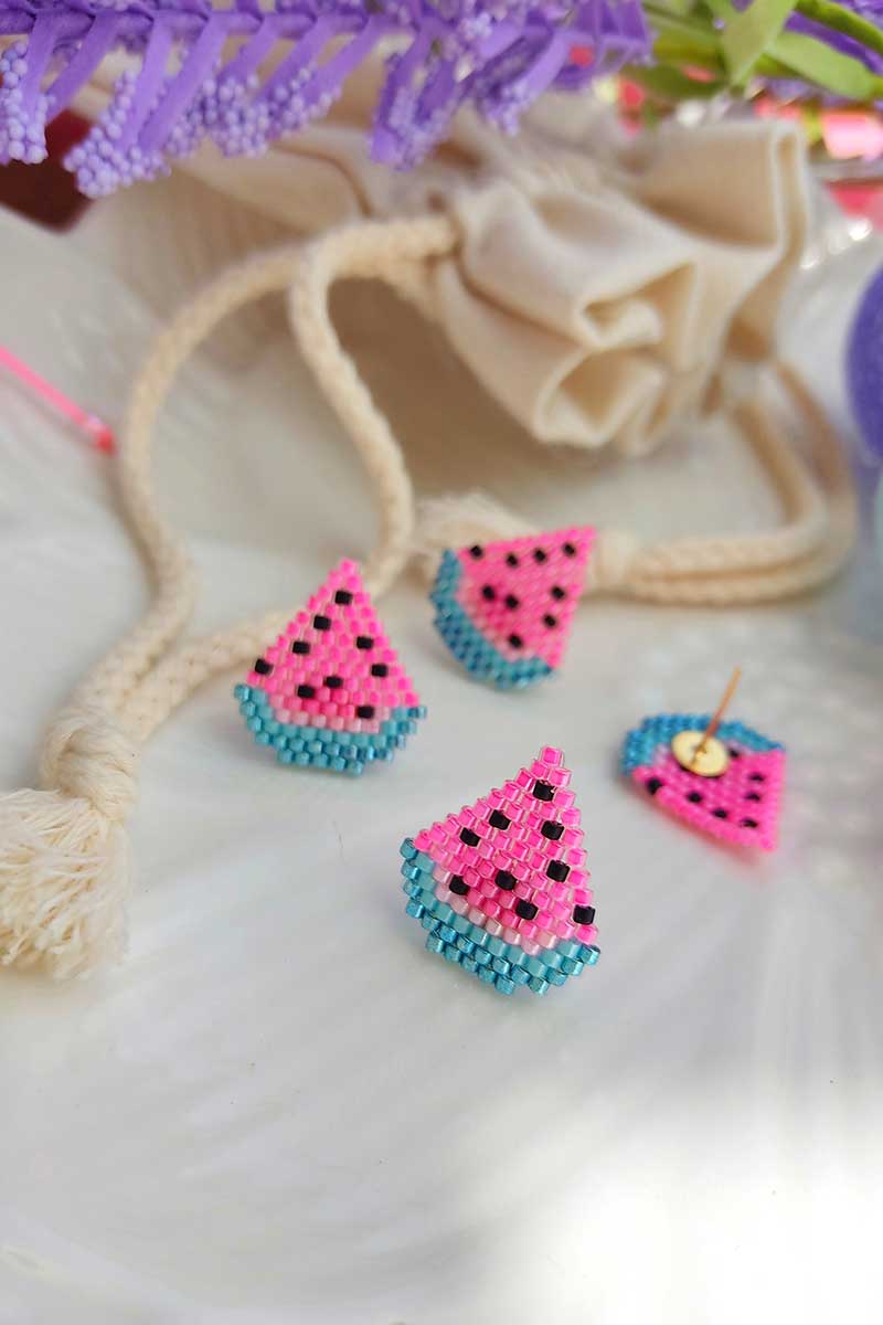 Topos tejidos en miyuki, herrajes en material acero
